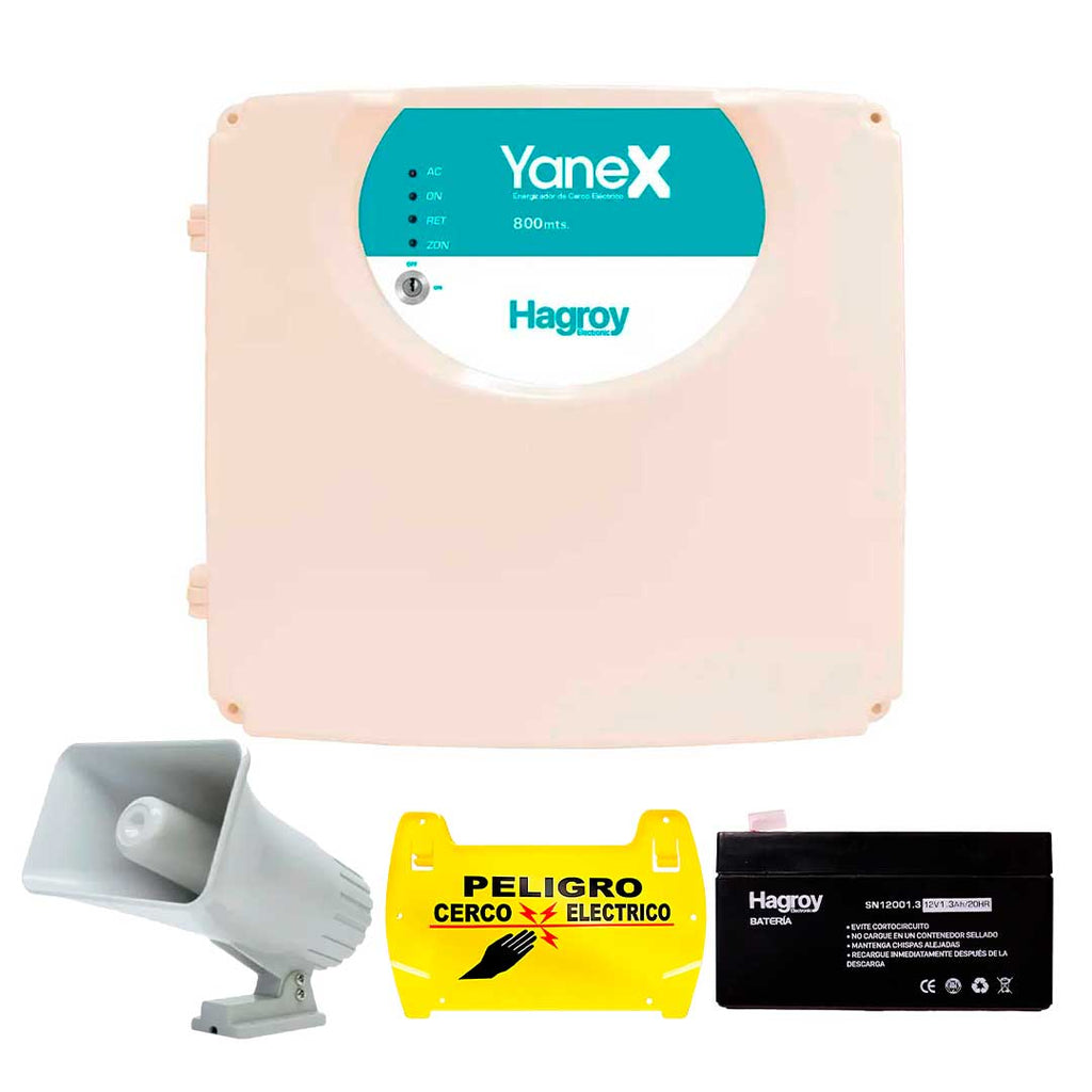 HAGROY HGYANEX1600 Kit de cerco: Yanex 800, Batería 4amp, Sirena 30w y Letrero