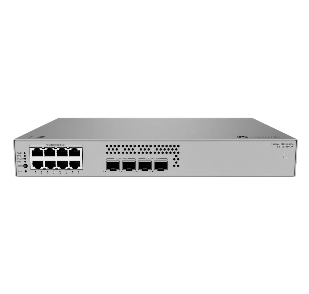 El Huawei S310S-8P4JX es un potente switch gestionable para rack diseñado para infraestructuras de red modernas. Con ocho puertos 10/100/1000BASE-T y dos puertos SFP adicionales, este switch ofrece gran flexibilidad y escalabilidad para diversas arquitecturas de red. El S310S-8P4JX admite alimentación a través de Ethernet (PoE+) con una potencia total de 128 vatios, lo que facilita la alimentación de dispositivos conectados como cámaras IP y puntos de acceso. Su capacidad de conmutación de 66 Gbit/s y su tabla de direcciones MAC con 16 000 entradas garantizan un procesamiento y reenvío de datos eficientes. El switch es apto para montaje en rack en formato 1U y cumple con los requisitos de las redes modernas, incluyendo compatibilidad con VLAN estáticas y Calidad de Servicio (QoS).