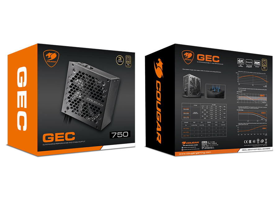 La serie COUGAR GEC cuenta con la certificación 80Plus 230V EU Gold, que garantiza una alta calidad, potencia, eficiencia, funcionamiento silencioso y durabilidad superiores. Será una fuente de alimentación fiable para quienes buscan la mejor experiencia de juego.