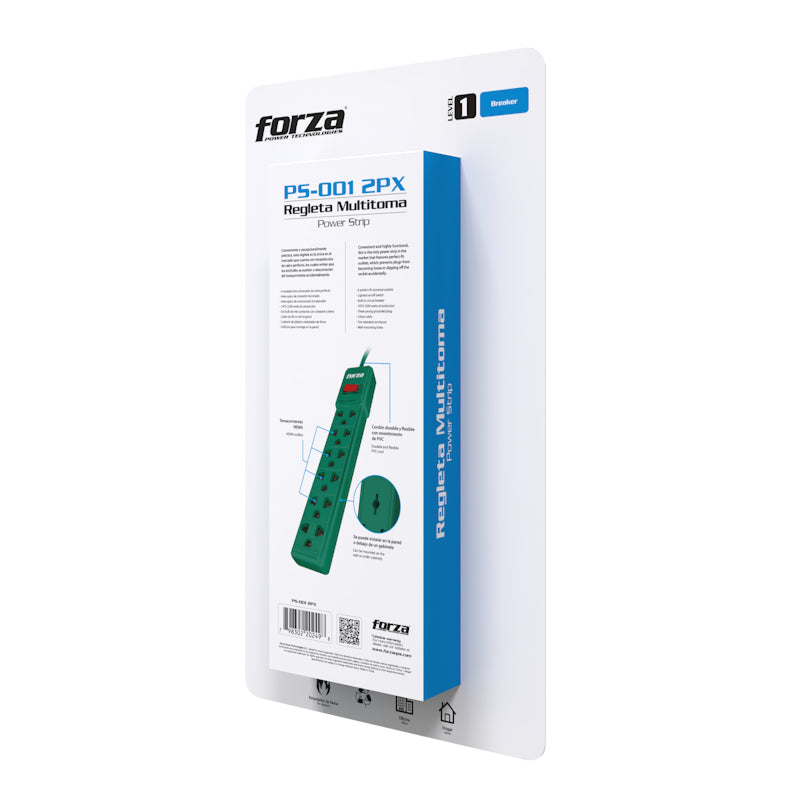 Regleta 2200W, 6 NEMA universales, disyuntor reposición-120V/240V, 2 pack Consumo