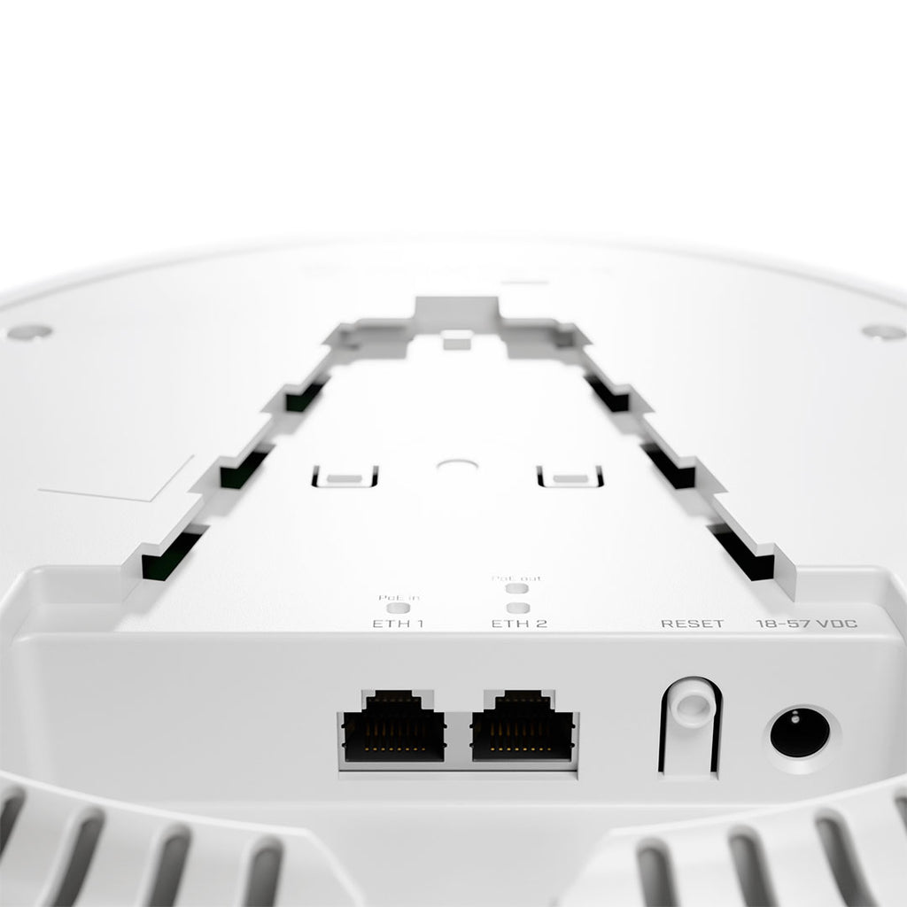 El Punto de Acceso cAPGi-5HaxD2HaxD de MikroTik es un punto de acceso WiFi6 que proporciona conexiones de alto rendimiento mediante sus dos puertos Gigabit Ethernet. Este modelo, que se instala en el techo, se destaca por su excelente rendimiento inalámbrico gracias a su tecnología AX1800.
