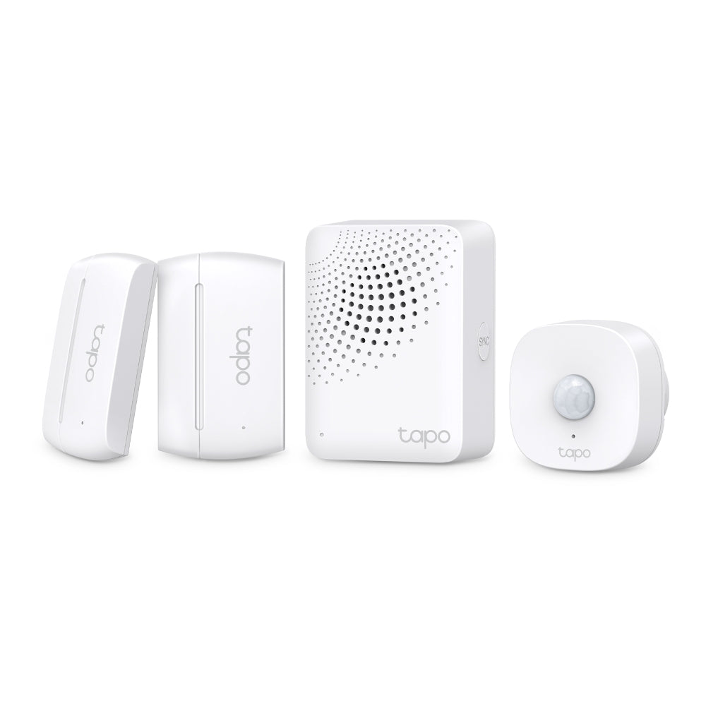 Tapo H100 × 1 Tapo T100 × 1 Tapo T110 × 2 Pila de botón CR2450 × 1 Pila de botón CR2032 × 2 Adhesivos 3M × 7 Guía de inicio rápido |