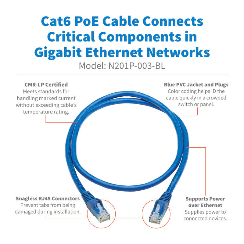 MARCA TRIPP-LITE ACCESORIO CABLE PATCH NUMERO DE PARTE N201-003-BL CATEGORIA CAT6 COLOR AZUL LONGITUD 0.91M (3 FT) COMENTARIO GENERALIDADES: