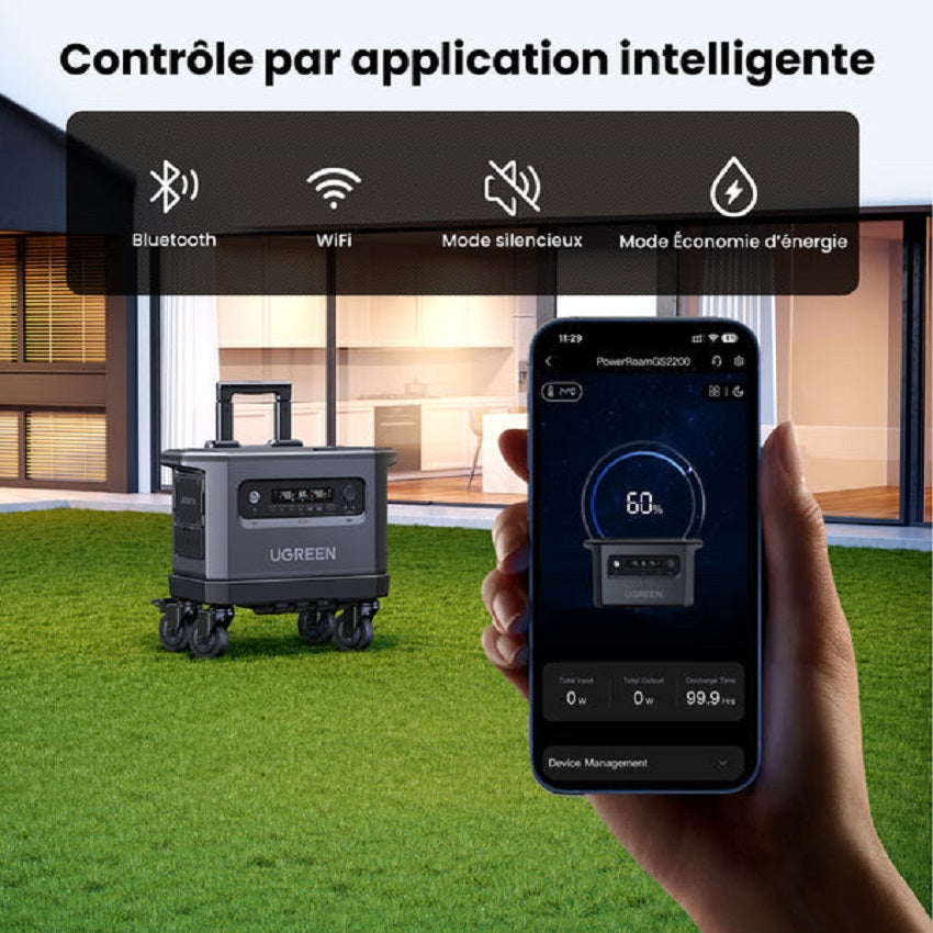 - Control inteligente a través de la aplicación: Descarga la aplicación UGREEN para obtener información completa y control total de PowerRoam 2200.