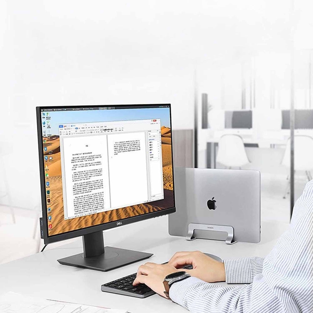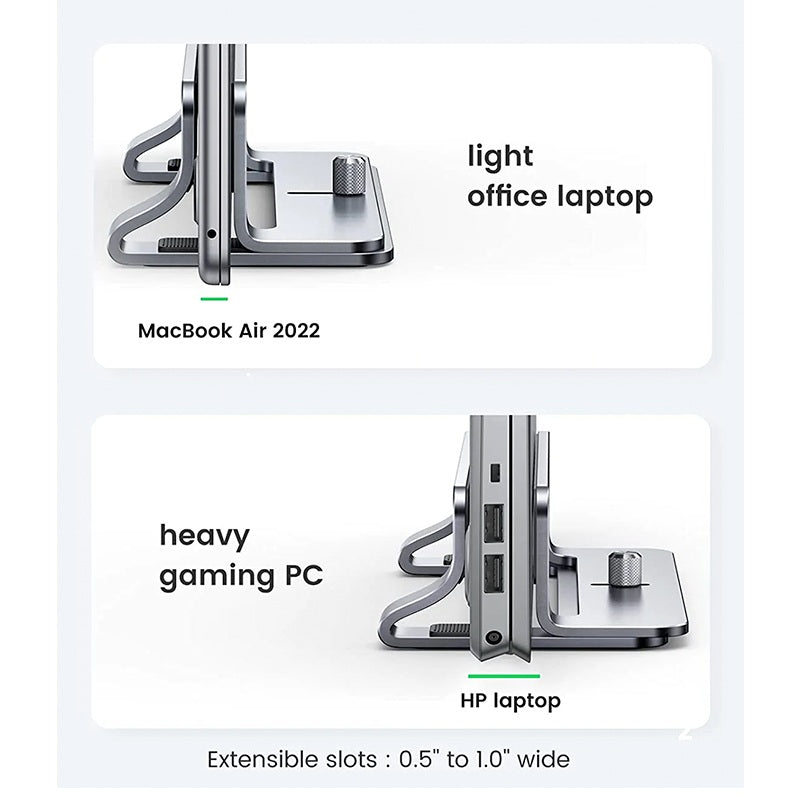 Si trabajas a menudo con tu portátil, conectando una pantalla externa y un teclado, el soporte que te presentamos sin duda te permitirá mejorar la ergonomía y la comodidad de uso del equipo. También te permitirá ahorrar espacio en el escritorio y mantener el orden. Podrás olvidarte de los cables enredados y de la falta de espacio para una taza de café o un portátil. Fabricado en aleación de zinc macizo, mantiene el portátil en posición vertical, ocupando poco espacio. También es perfecto para guardar un ordenador portátil cuando no lo estés utilizando.