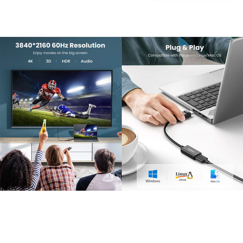 Resolución 4K UHD: el puerto de pantalla al adaptador HDMI admite resolución 4K de hasta 3840*2160 a 60 Hz, compatible con versiones anteriores de 2560*1440@120 Hz, 1920*1080@144 Hz, ideal para aprovechar al máximo su nuevo televisor y monitor 4K
