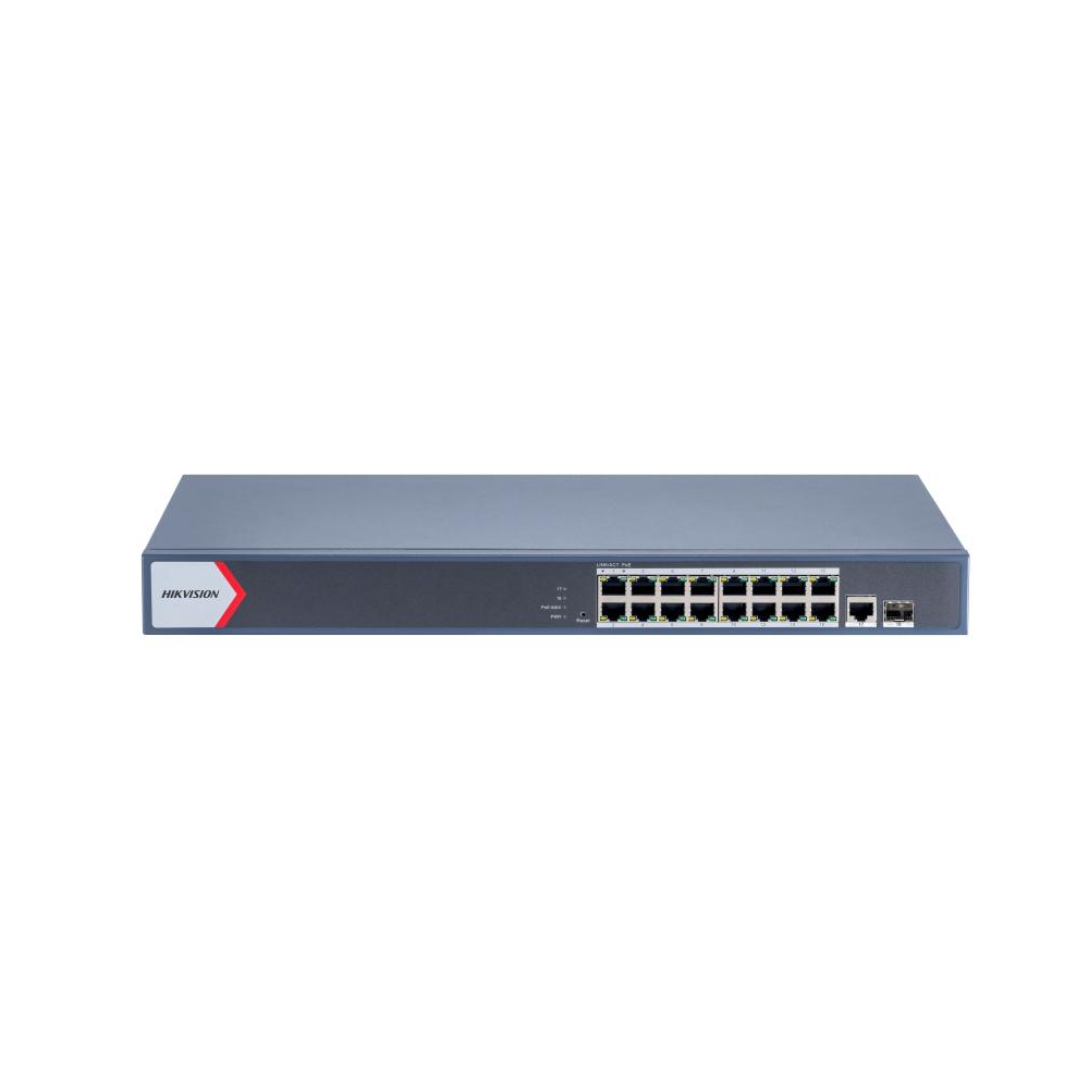 - 16 puertos Gigabit PoE RJ45, 1 puerto Gigabit RJ45, 1 puerto de fibra óptica Gigabit