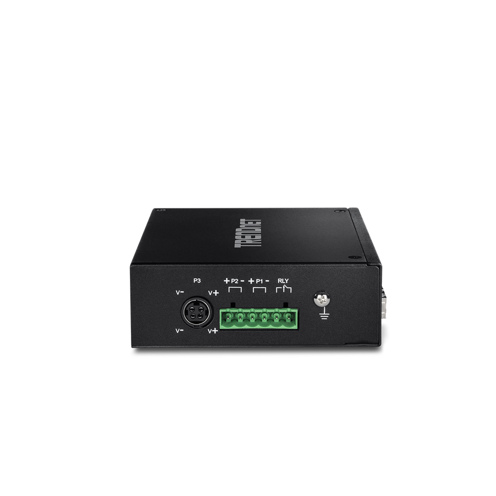 - Alimentação redundante: o switch de rede de 6 portas possui entradas de alimentação redundantes duplas com proteção contra sobrecarga de corrente (fonte de alimentação vendida separadamente: modelos: 48VDC3000/TI-S24048/TI-S12048)