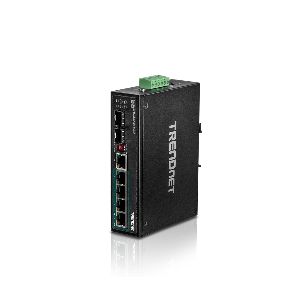 - Capacidade de comutação e alimentação PoE: O switch Gigabit PoE+ DIN Rail de 6 portas tem capacidade de comutação de 12 Gbps e 120 W PoE+.