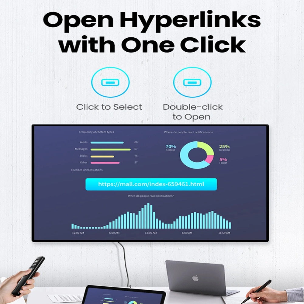 Dotado de un rayo láser rojo de Clase 2, destaca de manera segura y precisa los puntos esenciales de tus diapositivas
