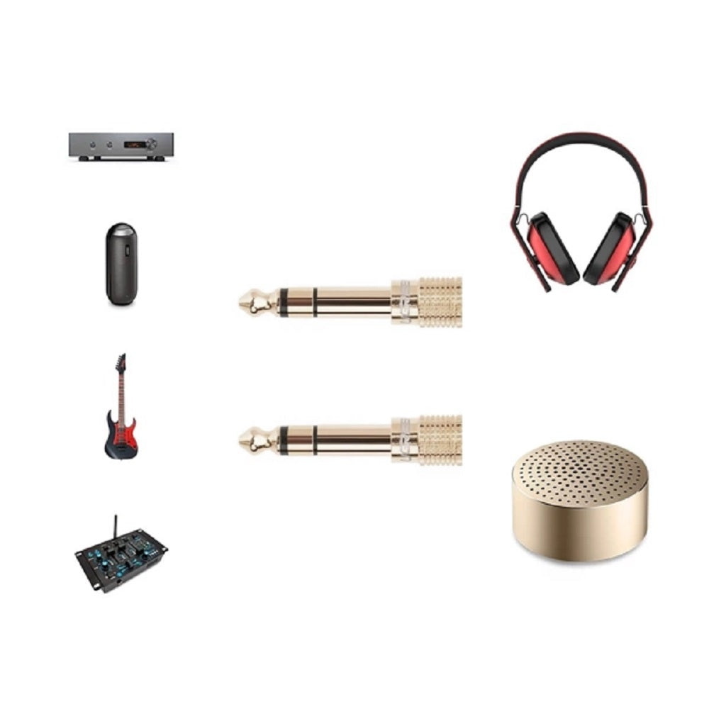 - El adaptador permite conectar un cable con entrada de 3,5 mm a una guitarra, mezclador o amplificador con entrada de 6,5mm.